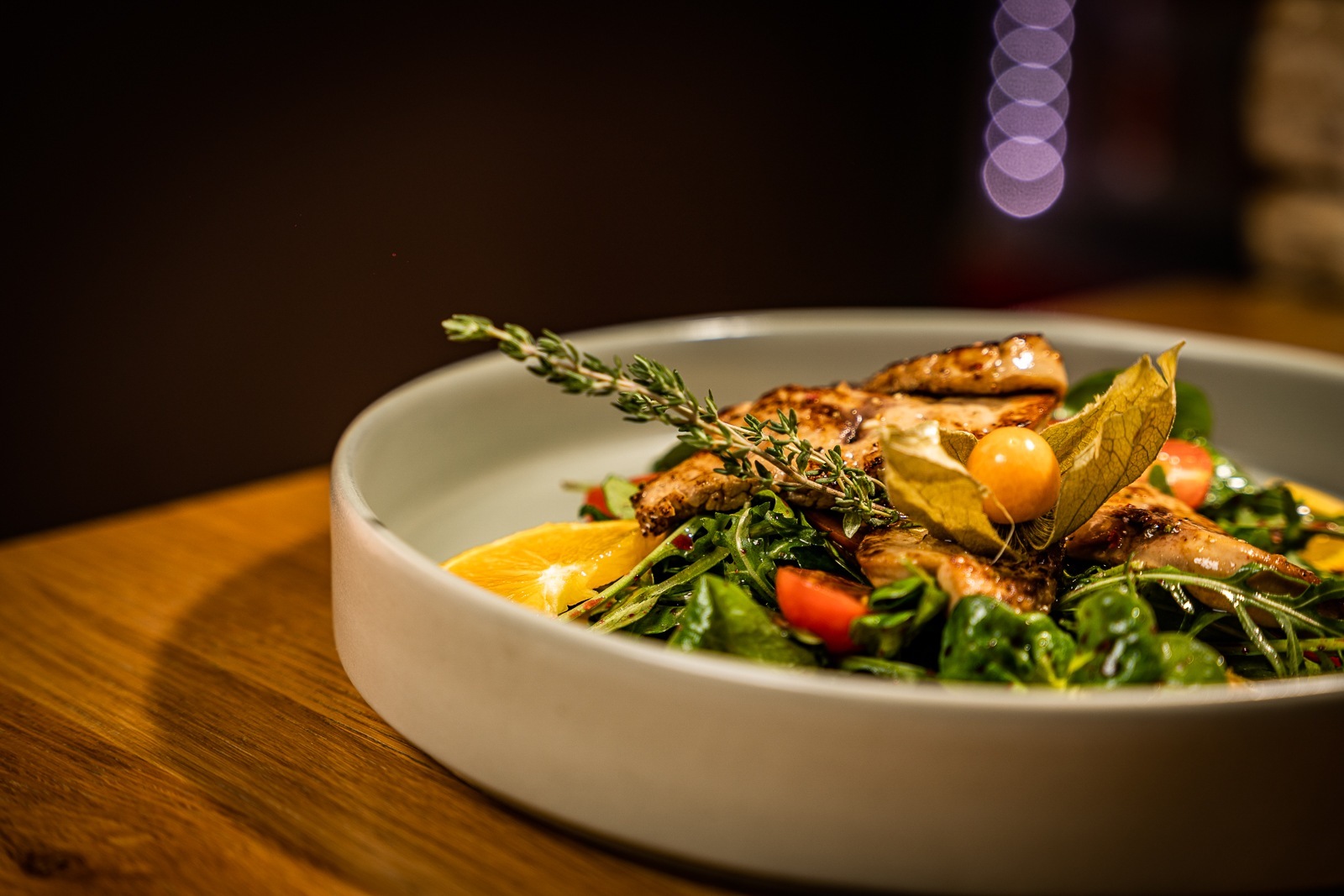 Náš upravený jedálniček sa netají kvalitne tučnými jedlami, ale nájdete v ňom predsa len aj zelenú stravu pre zdravý životný štýl. A keďže sme vám už predstavili novú pizzu, burger a cestoviny, na rade je čerstvý šalát plný vitamínov, ktoré sa v zimnom období určite budú hodiť. Kopa zeleniny však nie je jediná ingrediencia a okrem vegetariánskeho nádychu má tento zelený šalát aj niečo živočíšne – vykŕmenú kačaciu pečeň s pridaním cherry paradajok a brusnicovo–slivkovej omáčky. Ak ste si mysleli, že náš Caesar šalát neprekoná nič, vrelo odporúčame všetkými desiatimi.